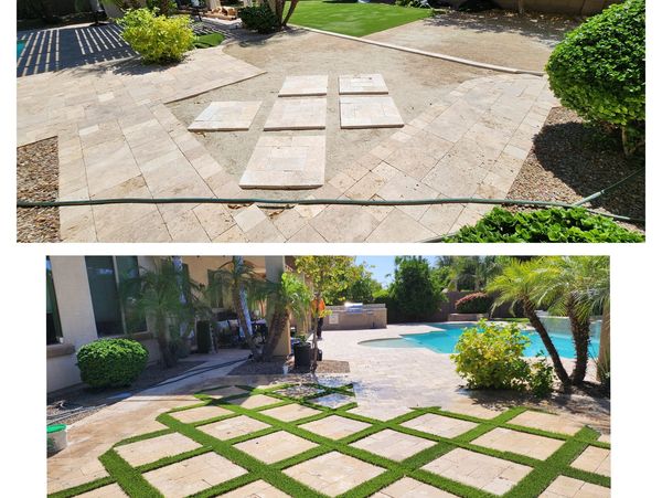 Nothing screams elegance quite like a beautiful travertine patio and pool deck surround, perfect for arizona as it does not retain heat like traditional pavers or concrete. With a variety of colors we can match the perfect tone for your yard and with travertine being fade resistant gurantee you to have a gorgeous patio that will last for years to come!